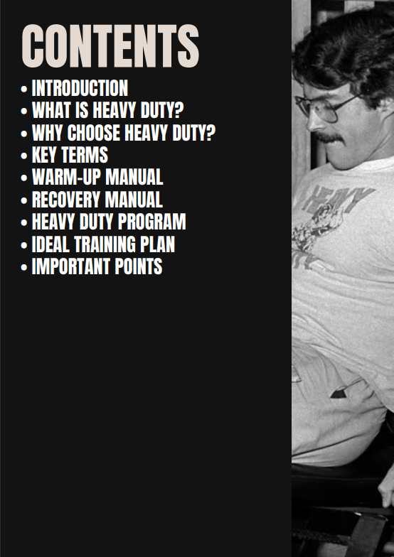 The Heavy Duty Training Program is a no-fluff, high-intensity, low-volume system designed to pack on size, strength, and definition in record time. Based on the legendary principles of Mike Mentzer, this program is your shortcut to maximum muscle with minimal time wasted.